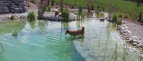 Der 2015 neu erstellte Naturpool/Biotop hat ein abfallendes Ufer, was den Hunden einen selbständigen Zutritt und Austritt ermöglicht. Auch ist ein langsames Heranführen des Hundes ans Wasser über das Ufer gewährt. Der Naturpool wird auf natürliche Weise rein gehalten und enthält keine Chemie, eignet sich somit gleichermassen für Mensch und Tier.
